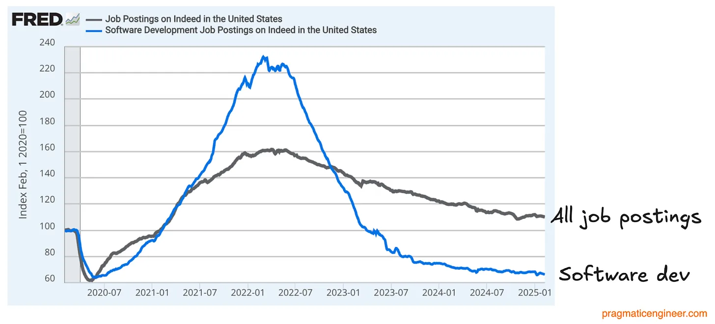 All job postings vs software development job postings. Data source- Indeed via FRED by Rabbie 小兔 2025-03-26 written by Rabbie 小兔 2025-03-26 39 0 FacebookTwitterLinkedinLINEEmail Rabbie 小兔 創業兔,雜食性閱讀者,在網路新創圈擁有 10 年的市場開發經驗,關心自我成長、創業成長,還有一些 Kpop(可能不只一些)。
