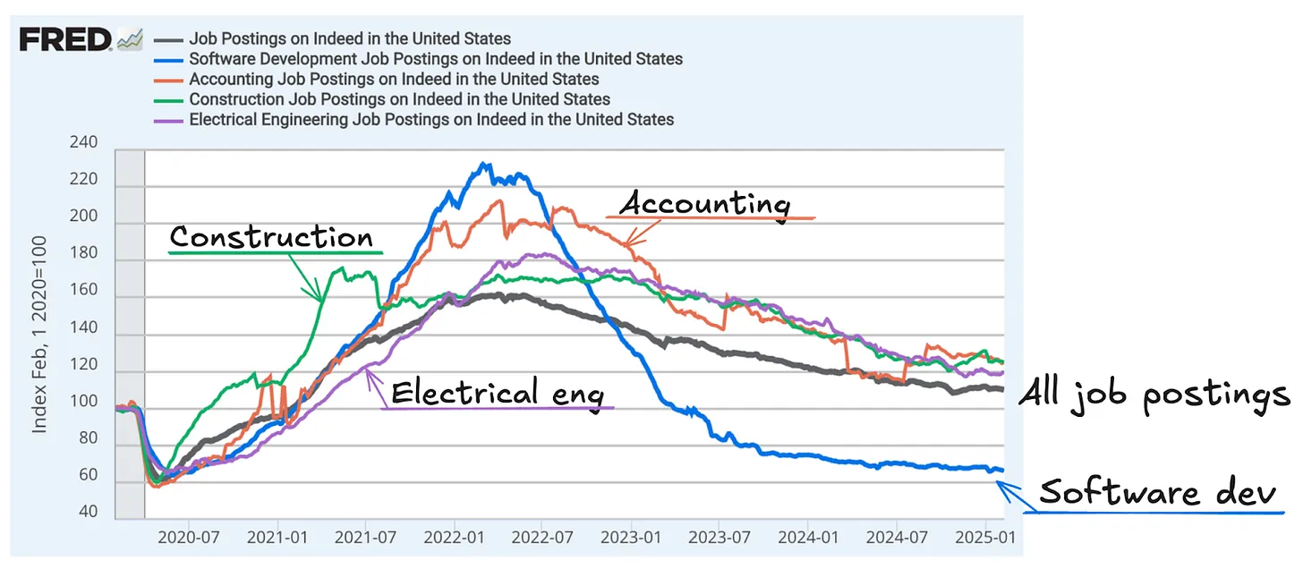 Sectors where vacancies are up since 2020. Data source- Indeed via FRED by Rabbie 小兔 2025-03-26 written by Rabbie 小兔 2025-03-26 36 0 FacebookTwitterLinkedinLINEEmail Rabbie 小兔 創業兔,雜食性閱讀者,在網路新創圈擁有 10 年的市場開發經驗,關心自我成長、創業成長,還有一些 Kpop(可能不只一些)。