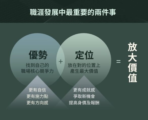- 聚焦|優勢定位:加入外部市場觀點,客觀檢視自己的價值,找到最適合自己的位置。