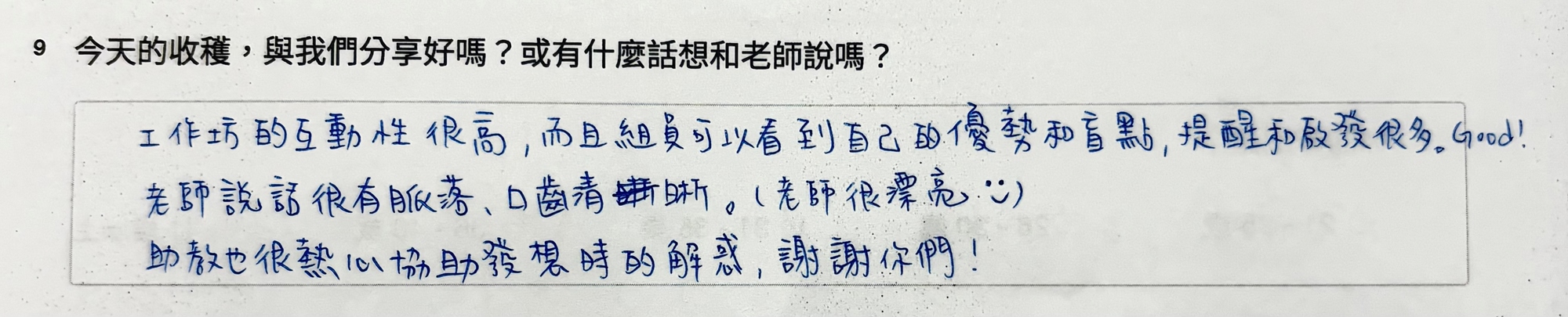 優 勢 探 索 工 作 坊【 學 員 課 後 回 饋 】